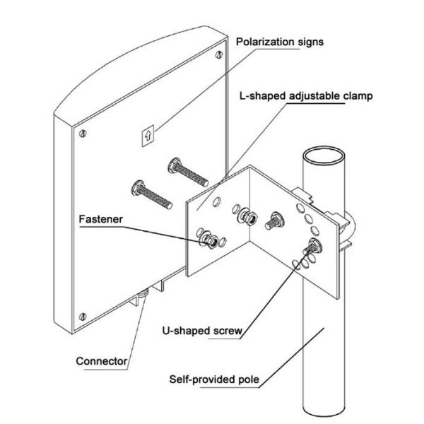 2 Erect the antennas to the pole with clamp according to polarization required.
